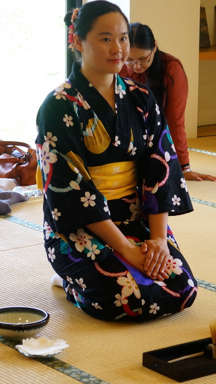 不過大家都是盤腿而坐,沒辦法像老師一樣正座,正座是以正確的姿勢坐下的意思。在日本,正座的正確姿勢是膝蓋彎曲跪著,將腳放在身體下,以背伸直坐下的坐法。正座是在日本的傳統文化 (茶道、日本舞蹈、武道等等) 必須使用的跪坐方式,老師可以從頭到尾一直正座真的好厲害。