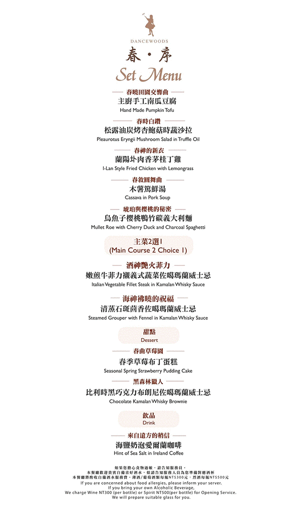 今天的主菜有兩種,第一種是「嫩煎牛菲力襯義式蔬菜佐噶瑪蘭威士忌」。第二種是「清蒸石斑茴香佐噶瑪蘭威士忌」。噶瑪蘭威士忌也算是宜蘭名產,最近得過不少獎牌,還好我搭接駁車台北,不然這樣開車會不會被酒測啊。因為老家務農不吃牛肉,所以我跟老媽都點了石斑。