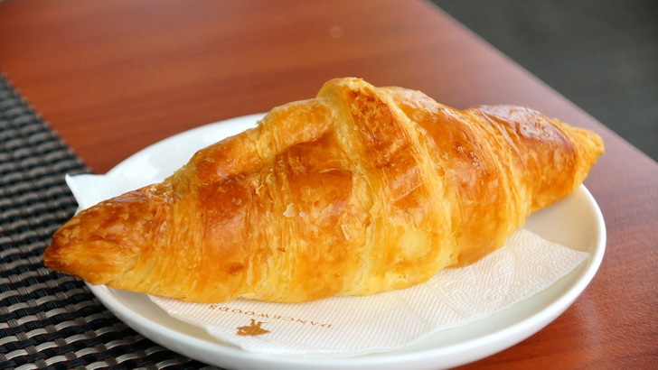 不過可能是當日來客量過大,且擠在同一個時間用餐,出餐速度有點慢,我是不會在意這個啦,只是擔心趕不上接駁車回台北而已。等餐點的空檔閒著沒事,看到旁邊有早餐的可頌麵包,就順手烤了一個來吃。