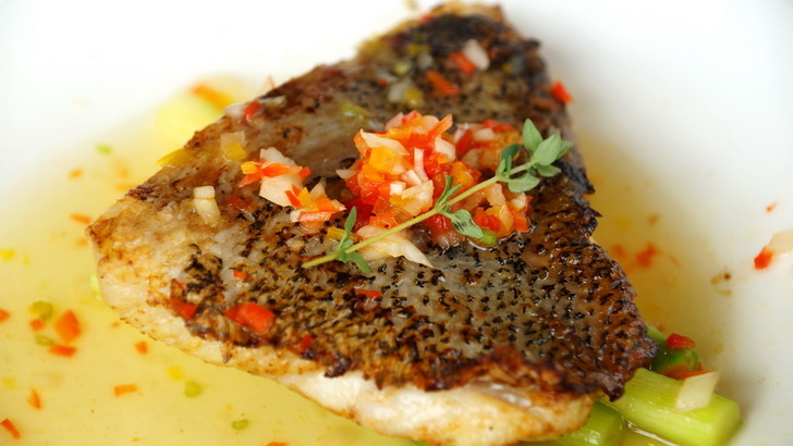 主菜來了,這是「清蒸石斑茴香佐噶瑪蘭威士忌」,新鮮的石斑魚以清蒸佐噶瑪蘭威士忌,搭茴香醬汁並融入蔬菜高湯,使魚肉口感鮮美柔順,威士忌可以替魚肉去腥,同時增添獨特香氣,又融入在地風味。但我一直覺得魚肉在清蒸過後有煎一下魚皮,讓魚皮上色兼有酥脆的口感。