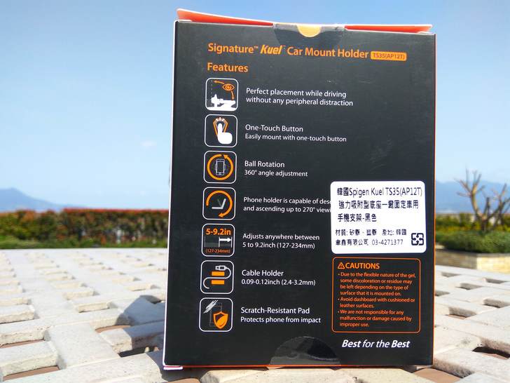 就用條列式的來說明個人使用Spigen TS35(AP12T) 強力吸附型底座一鍵固定車用手機支架後的感想。