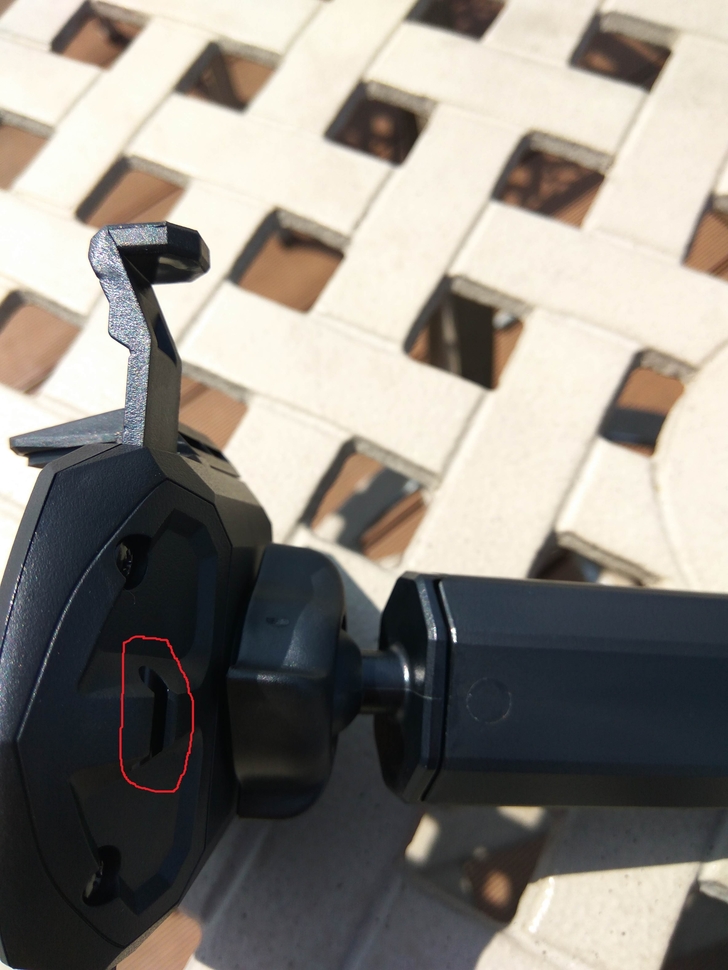▲接著來看置放手機面板。注意中間的按鈕,它就是所謂一鍵固定的靈魂,手機往上一靠,立刻固定手機。
