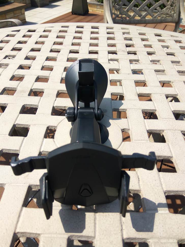 ▲先來看一下支架部份,前方為與置放手機面板連接的360度圓球設計,後方則是吸盤,可以看到有齒輪設計的調整旋紐,讓你可精確的調整角度。