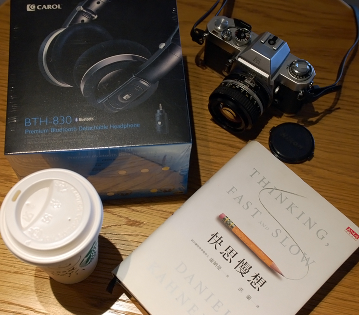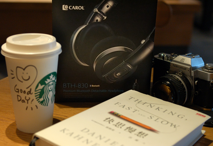 ▲ 今天午后時光,小弟拿了一本近代最偉大的心理學家”康納曼“畢生傑作『快思慢想』,一台1972年所推出的傳統底片相機 Nikomat EL ,以及CAROL BTH-830 經典無線藍牙高音質耳機,再點了一杯熱拿鐵,想利用悠閒的午后,一邊輕啜著『熱拿鐵』,一面閱讀著書本,輕鬆聽著慵懶的沙發音樂,細細品嚐這片刻的美好時光!
