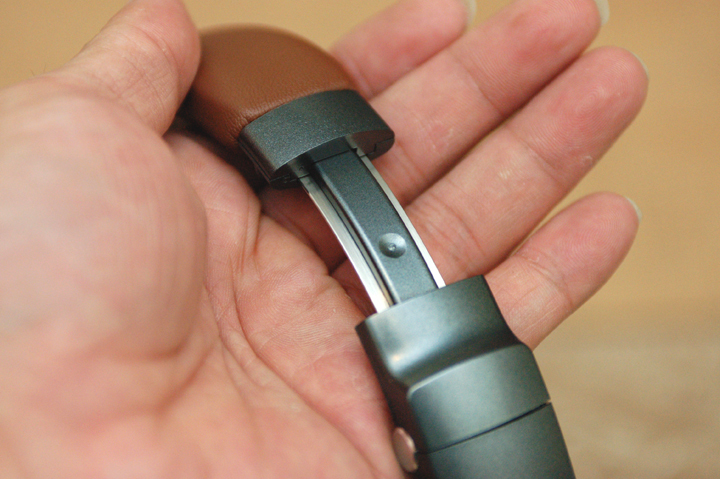 ▲ 耳墊覆材同樣採用親膚性極佳的高蛋白皮革材質,加上參考眾多青年男女的頭型、以及頂級耳機品牌的尺寸設計開發這可調式活動軸,讓佩戴更舒適。
