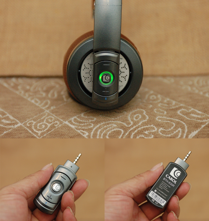 ▲ CAROL採用可拆式藍牙模組的設計的耳罩式耳機可說是業界首創,透過這一組 BTH-830R/T 藍牙接收/發射器,具備一機多用,也可讓家中的傳統高級音響,立即升級成無線系統。