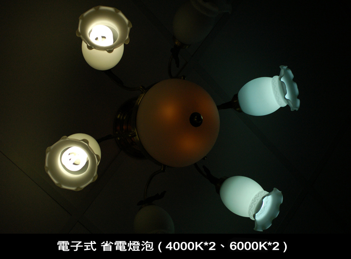 ▲ 臻光彩LED燈泡4000K*2顆、2700K*2顆後(消耗功率10W*4=10W),耗費的電力不到電子式省電燈泡的一半。
