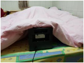 把被子鋪平,被子內用枕頭撐高,然後用Dr.Air 空氣醫生Q-Cube怡可淨活氧機放在床尾蓋住,開起消毒模式,留點縫細讓濾網空氣流通。