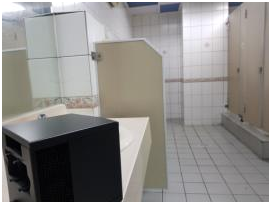 有了會議室的經驗後,又拿到公司男廁所來進行體驗。公司內的廁所,雖然有人打掃處理,但是味道依舊揮之不去。那將Dr.Air 空氣醫生Q-Cube怡可淨活氧機也放到公司男廁來進行除臭實驗。
