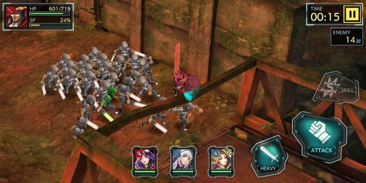 首先,在操作方面設計的非常簡單明瞭,左手移動、右手打擊,超級簡單,而且在打鬥中,一點都不卡,這點就會讓人想持續玩下去;也因為這遊戲強調的是武器,因此與角色人物相比,武器的比例非常巨大且顯眼,看著遊戲中的主角扛著巨大武器,左揮、右揮三兩下,輕鬆將敵人一一消滅真是超級爽快;由於遊戲沒有體力限制,閒暇時想玩,隨時就能進入遊戲中偷閒、打個幾場,那惱人的煩惱也被這巨大的武器一一揮去。
