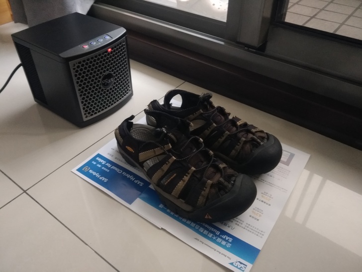 ▲使用Dr.Air Q Cube INT-25紅燈消毒模式,直接對潮濕的鞋子吹,不但可除臭,還有風乾的效果,使用用穿起來變乾爽了,異味也變淡。