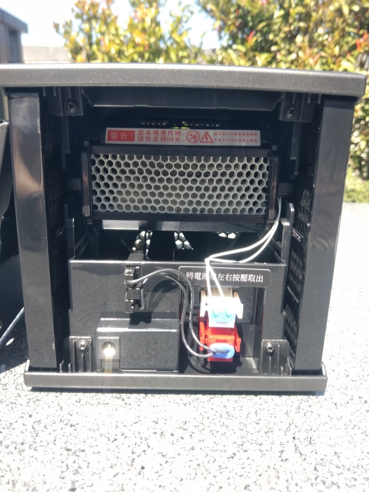 ▲下壓開啓背蓋後,可以看到二個組件,這也是主動式淨化的靈魂。