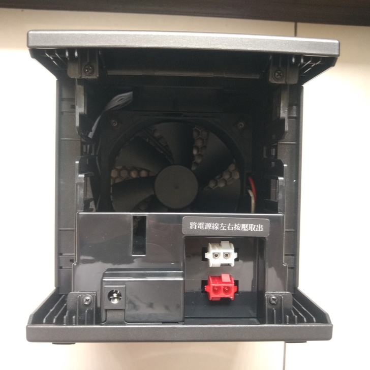 ▲把二個組件拆下後,即可看到風扇,可從前方拆開保養清潔。