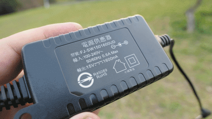 【▼】電源供應器的部分,其型號為FJ-SW1501600UD,額定輸入為100-240VAC@0.6A(Max)50/60Hz,輸出為15VDC@1.6A。不過僅通過R45089的檢驗,並沒看到有安規的認證。倒是提供的線還蠻長的,約有250公分左右,讓Dr.Air空氣醫生醫治空氣不受「線」制!