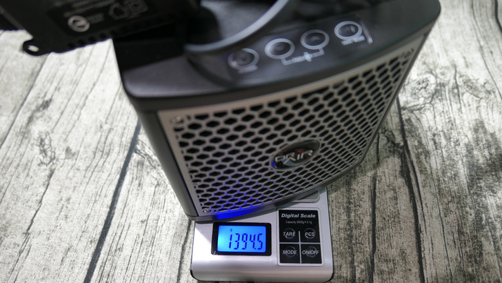【▼】體驗過程中,總不時將Dr.Air空氣醫生不斷更換位置來淨化,拿在手中真的不像是空氣清淨機的重量阿,仔細秤重一下,才發現這台活氧機才1395克,以麻雀雙小、"五" 臟俱全來形容一點也不為過。