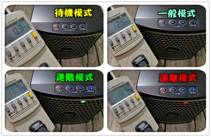 【▼】Dr.Air空氣醫生四種模式下的耗電狀況都在20瓦以下,待機模式雖符合源局的0.3W的待機標準,但若能降至0.1W以下,相信在這漲聲響起的時刻,絕對會廣受好評的。