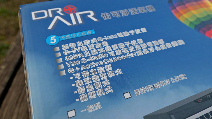 【▼】在包裝外箱上可以看見Dr.Air空氣醫生五大先進淨化技術,面對這麼多專有名詞的產品,小編以往都會先上網爬文做功課,深怕別人以為我們不懂,不過這次真的太過於抽象,只好直覺的去感受Dr.Air空氣醫生與他牌空氣清淨機的差異。
