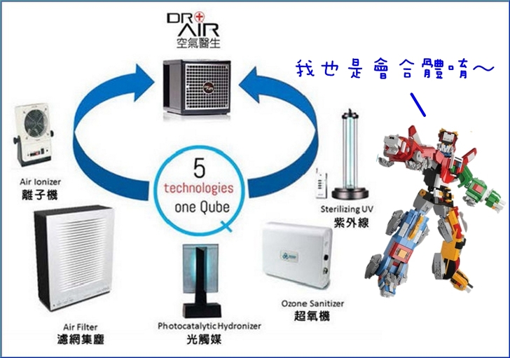 【▼】不過在體驗之前,也要與大家區分Dr.Air空氣醫生與市面上賣的空氣清淨機有何差異?最大的差異在於Dr.Air空氣醫生集合了負離子、濾網集塵、光觸媒、超氧機與紫外線等五項功能,而一般空氣清淨機最多只結合了2~3項功能,五獅合體聖戰士就是強啦~