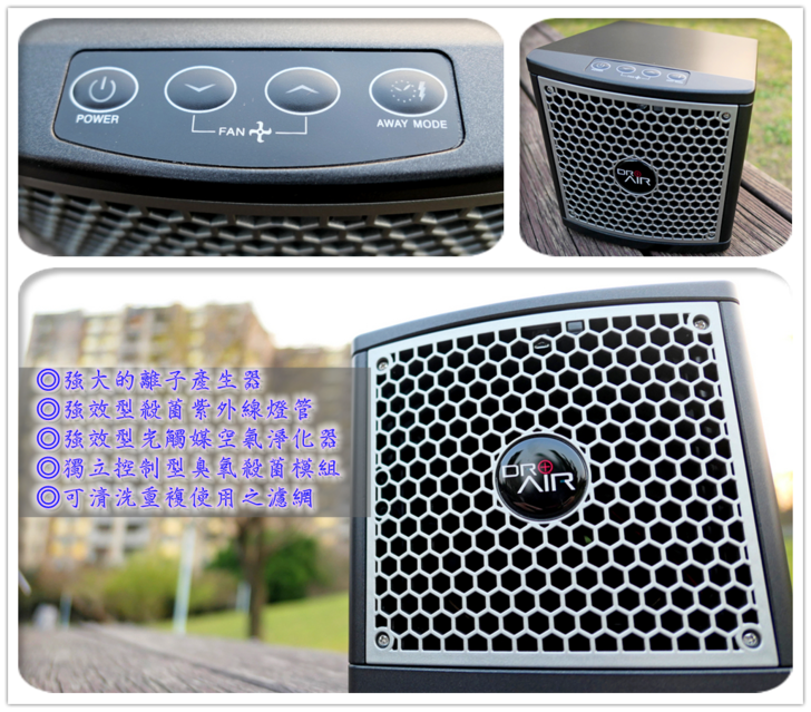 【▼】第一次開機時,首先會聽見蠻小聲的風扇運轉聲,若沒有燈號指示的話,還真的不知道運轉了沒,真的很安靜,而運轉的同時也會排出一些味道,這些味道像是塑膠零組件,還好運行了1分鐘就消失了。Dr.Air空氣醫生採用大自然的五大技術來淨化室內空氣: