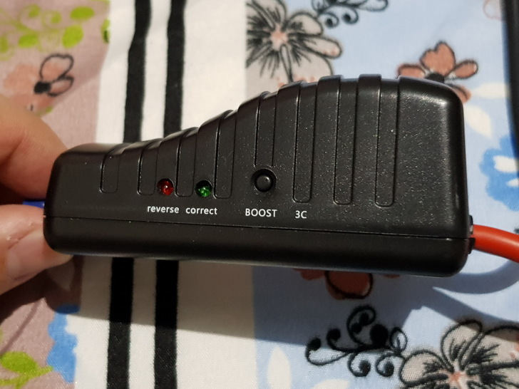 採用的是智慧型充電夾,只有接錯或是電瓶沒電,透過燈號及閃爍就可以立即知道是否有無夾錯正負級