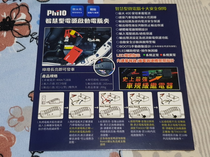 這個主機旁有燈號顯示,是否接對正負極或是偵測電瓶的狀態。不僅防呆也可以保護主機。這部份滿貼心的~