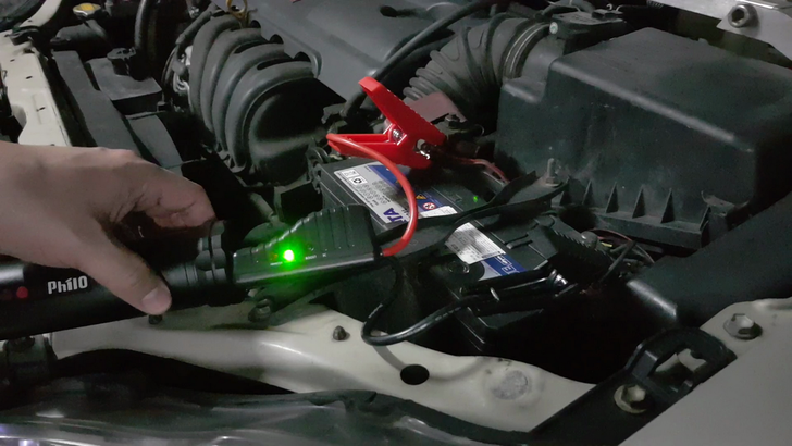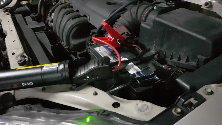 我先示範在沒有電瓶的情況下,PHILO專業救車手電筒如何啟動汽車