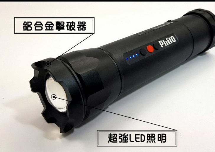 此款手電筒的外體是採用軍規高硬度鋁合金外殼,抗衝擊力、抗擊打能力強,因此若是發生緊急狀況時,也可破窗救人。