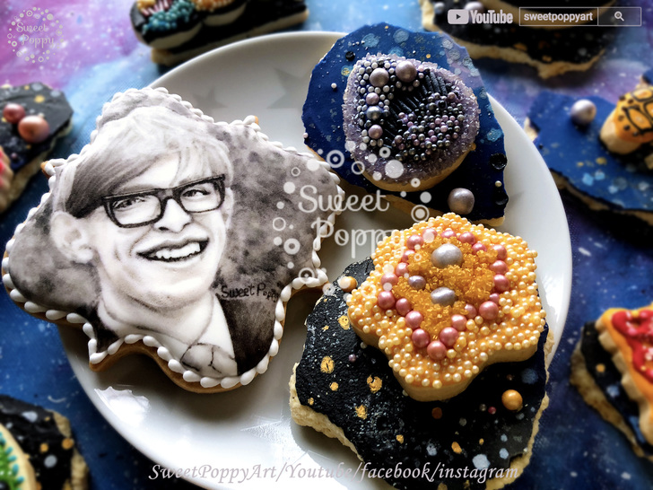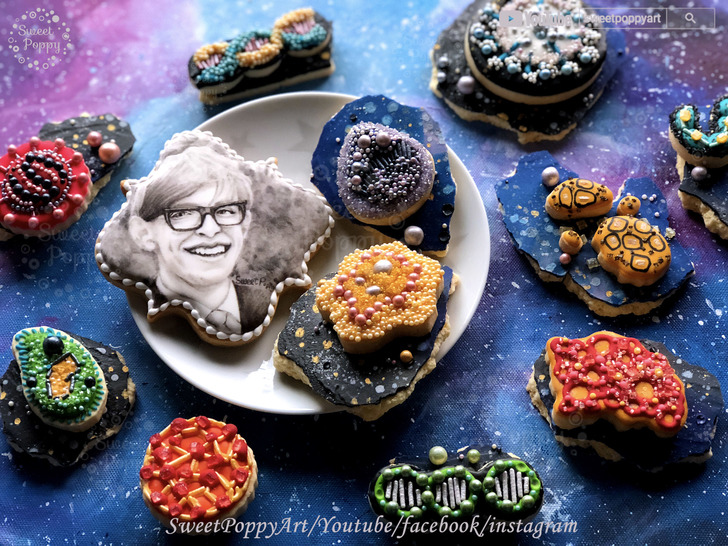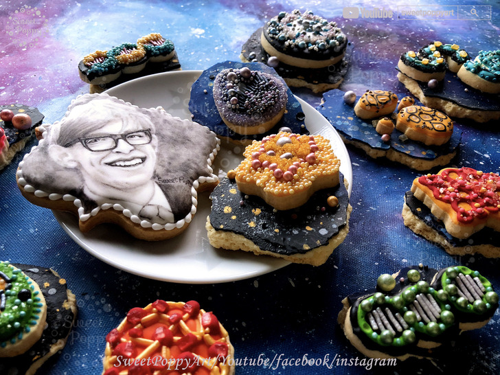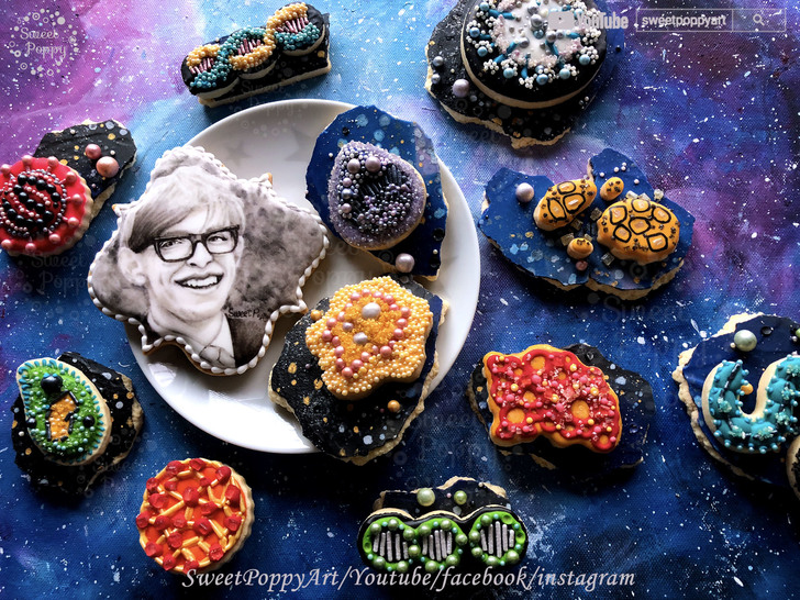 學習要如何在餅乾上面畫 史蒂芬霍金斯的宇宙 | SweetPoppyArt 甜胖皮藝術糖霜餅乾 | #20(原創影片)(4P+影)