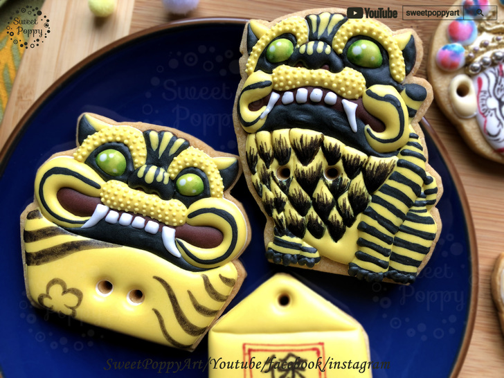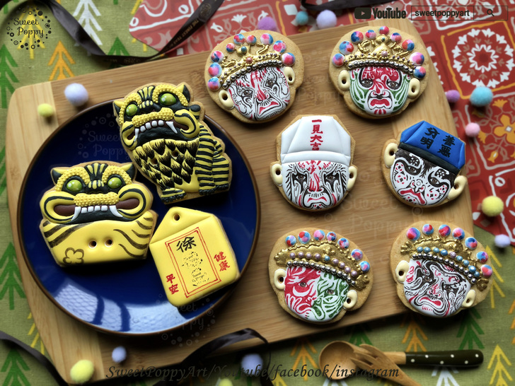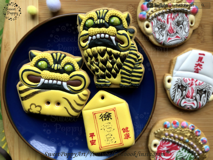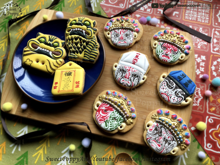 學習要如何在餅乾上面畫 金虎爺 - 家將陣頭 | SweetPoppyArt 甜胖皮藝術糖霜餅乾 | #21 (原創影片)(6P+影)
