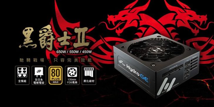 全漢在近期發表了同屬金牌轉換效率家族的Hydro GE系列電源供應器,在中文方面以「黑爵士II」來命名。瓦數方面分成450、550、650W三種選擇。整體的架構採用雙晶順向+同步整流+DC-DC的組合。並且搭配FDB軸承的散熱風扇。