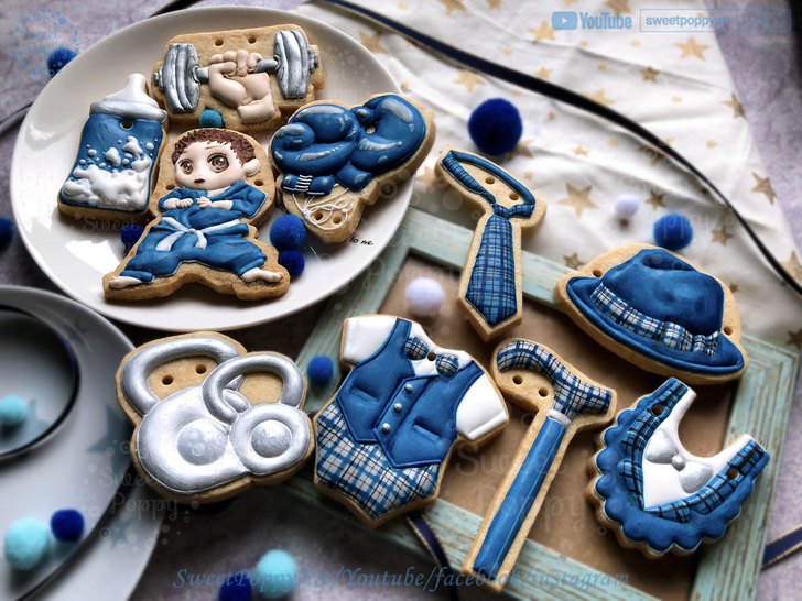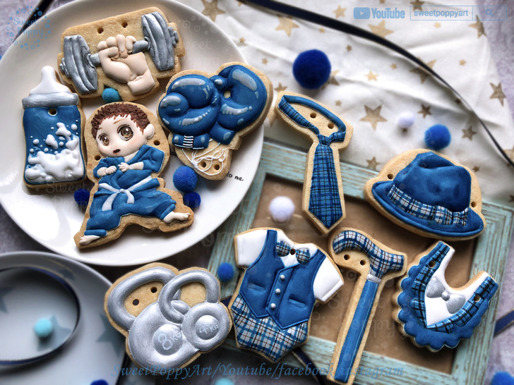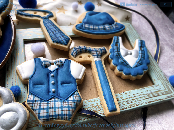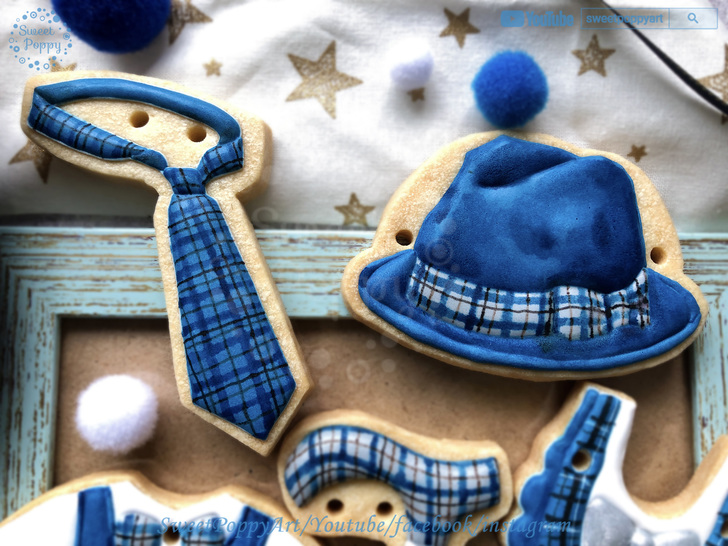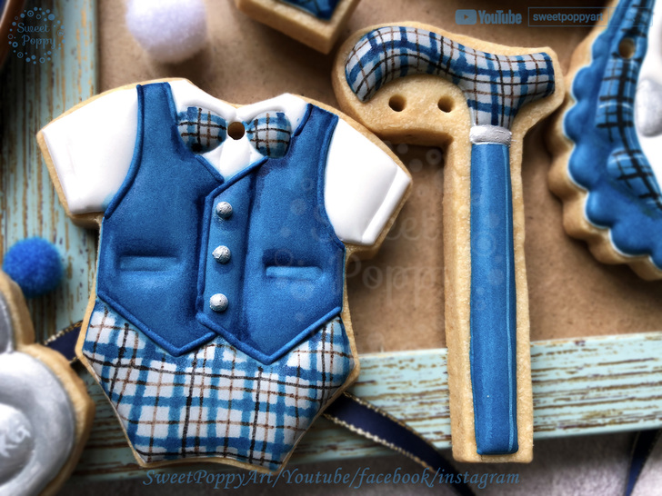 學習要如何在餅乾上面畫 紳士&硬漢 收涎餅乾 | SweetPoppyArt 甜胖皮藝術糖霜餅乾 | #22 (原創影片)(8P+影)