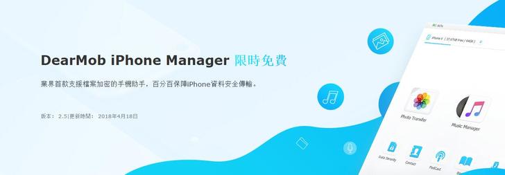 DearMob iPhone Manager是一款iPhone、iPad、iPod文檔數據安全傳輸與管理的專業軟體。現新增照片、影片、聯絡資訊的傳輸備份功能。高等級加密,保護你的私人資料,避免洩露。
