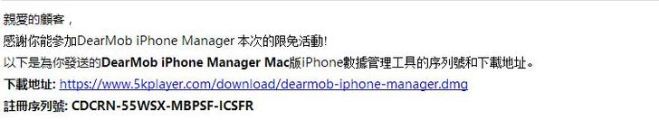 據知情人透漏 DearMob目前還未對公開此次中文版的限免活動! 目前他們在做英文版的限免--! 就問你想不想拿到中文版免費序列號前幾名 --不過這次如果開放的話總共也就兩百個名額,先到先得啦~~