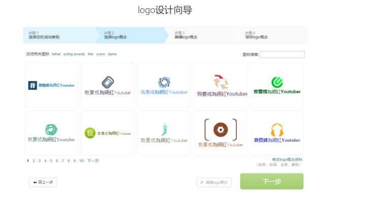 記得依造想傳達的理念來選擇喜歡的Logo,再按下一步