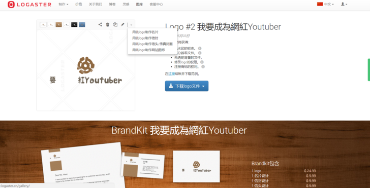 Logaster除了Logo外還可以製作名片、信封、網站圖標