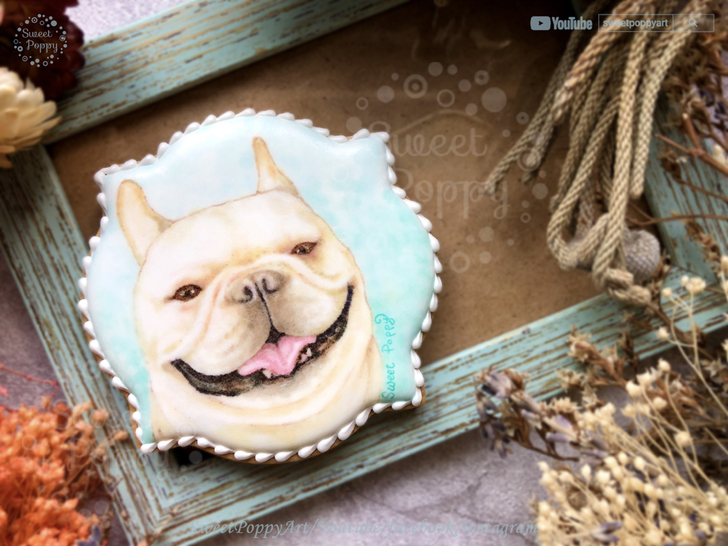 學習如何在餅乾上面畫 法國鬥牛犬 French Bulldog | SweetPoppyArt 甜胖皮藝術糖霜餅乾 | #27 (原創影片)(3P+影)