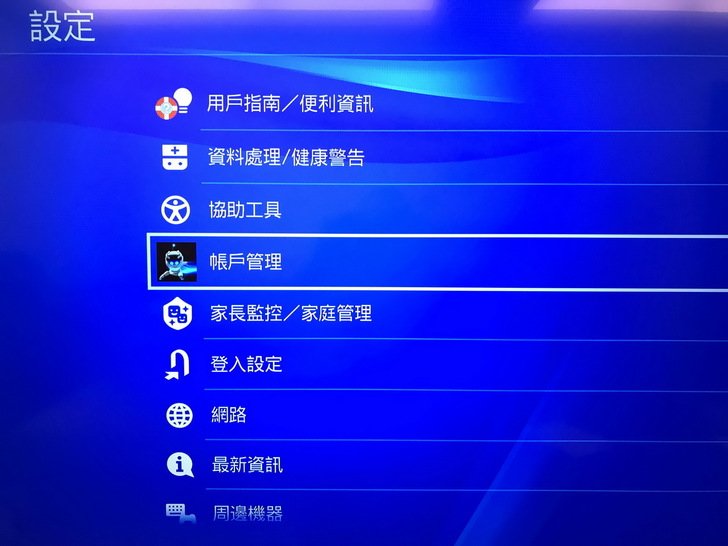 接下來的語言設定等就省略啦,然後到「設定」、「帳戶管理」、「登入PlayStation Network」登入自己的帳號