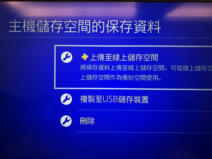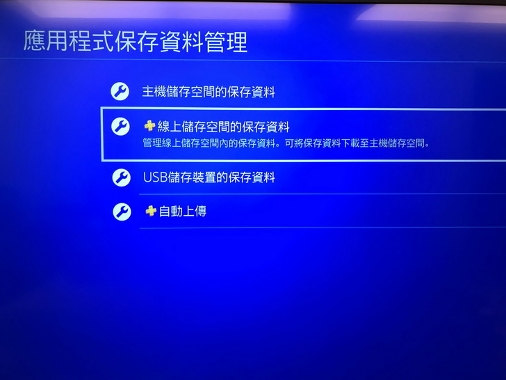 PS Plus線上儲存存檔更簡單,只要在剛剛選擇我們要備份時的步驟,選「上傳至線上儲存空間」,接下來的步驟和前述相同,選好就上傳至PS提供的雲端空間