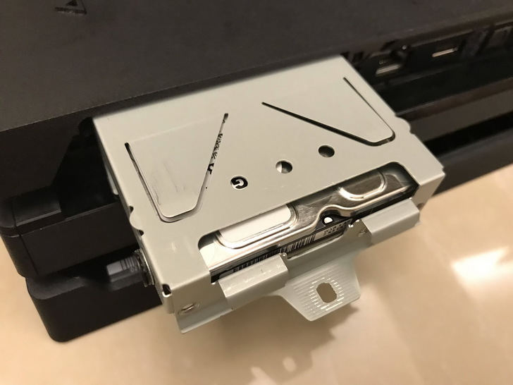 把PS4 Pro硬碟放置處有個檔住的蓋子打開,只要往旁邊翹開即可