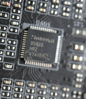 供電配置共 4+2相(GT VCCIO) 並搭配Intersil ISL95866 PWM控制晶片
