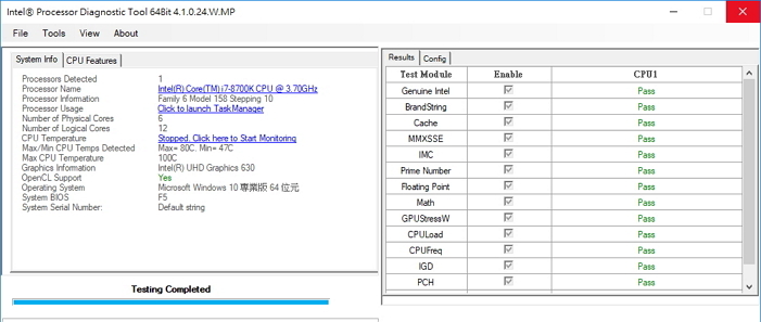搭配C7的整機燒機測試︰使用Intel原廠診斷程式