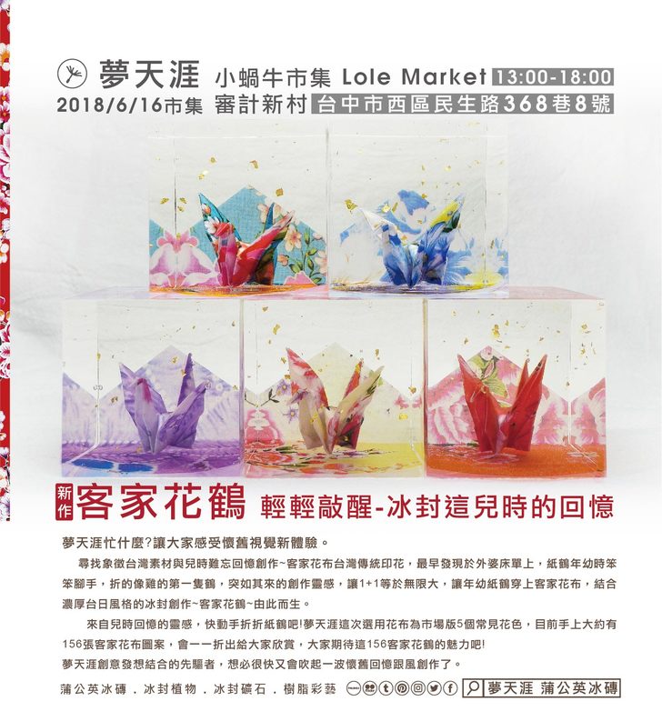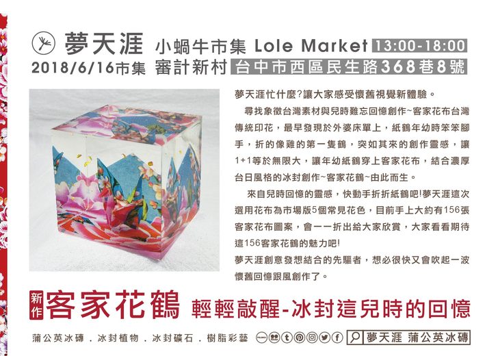 2018/0616 夢天涯邀您來市集~看看新作客家花鶴-輕輕敲醒,冰封兒時的回憶。