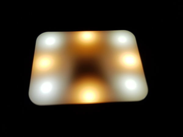 那個中間的按鈕是燈的開/關,三種色系(冷色,暖色,冷暖色)及 三段亮度等9種燈光效果
