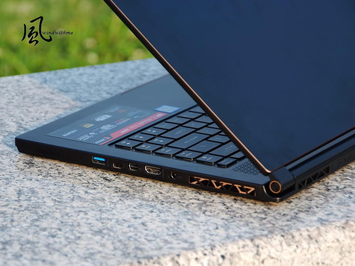 不同與以往GS輕薄系列的電競筆電採用黑紅配色,用金色線條看起來外觀更加特別