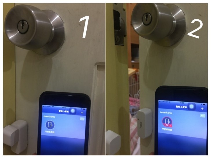 接下來是安全設備的部份,EQL門窗感測器我將它裝置在房間房口,門關著時沒有動靜,不過小小力的打開了一點門,顯示上出現了通知,讓你知道門被打開了,敏感度真的是非常的高。
