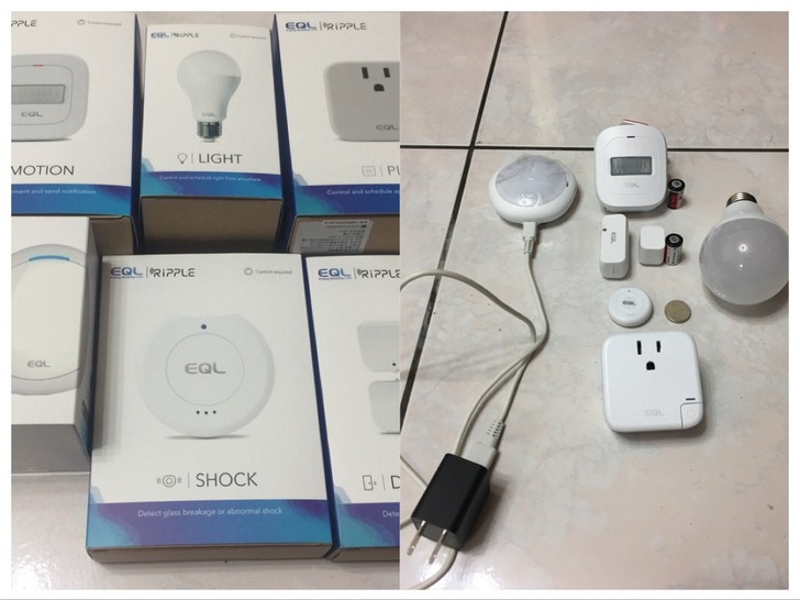 既然能帶回家,自然立馬拆來體驗一番,試用的品項一共有六種,包含EQL智能小管家(好比主機一樣)、EQL智能燈泡、EQL智能插座、EQL門窗感測器、EQL動作感應器和EQL振動感應器,就如同我前面所說,每一種體積都不大,造型也不複雜,小巧可愛,看起來就一個小擺設一樣。