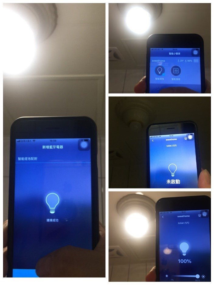 燈的控制部份當然是先換上了EQL智能燈泡,然後將它新增進EQL智能小管家的介面中,之後便能透過APP來控制電燈的開關,甚至還可以調整它的亮度,這是一般電燈做不到的,過往都必須透過裝幾顆燈泡,然後藉由幾顆有亮幾顆沒亮來讓燈光的亮度達到不同,但EQL智能燈泡一顆就夠啦!