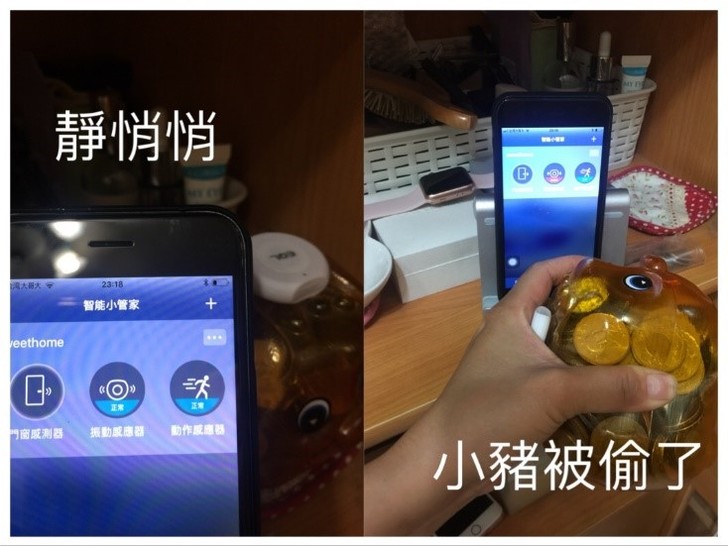 後來發現它居然可以裝在我的小豬上,這樣如果有人動了我的小豬,我就會知道,嘿嘿嘿!!!