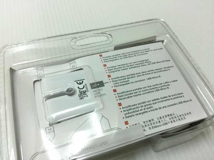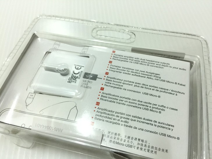 ▼內容物一覽,MicroUSB充電線、擴大機本體、音源輸出線,相當簡單。