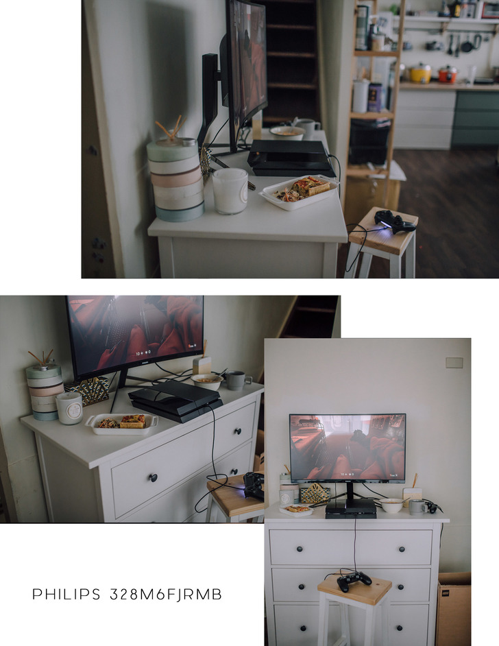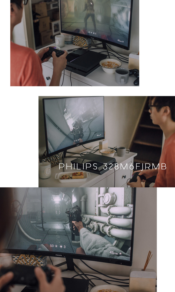 PHILIPS 328M6FJRMB放在桌上接上PS4玩真的感覺不錯尺寸剛剛好,本來還沒使用真的覺得有可能太大!爽度破表!